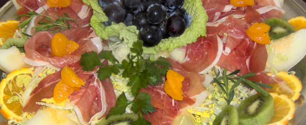 Hier grüßt die Mittelmeer-Sonne! Diese fruchtig-herzhafte Kombination ist eine nette Ergänzung, die zu nahezu jedem Büffet passt. Sie erhalten die Platte zum Preis 80,00 €.