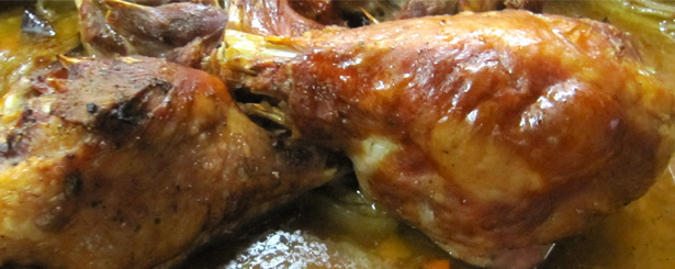 Grandma Johnson's Thanksgivingtafel kommt dabei ohne lästiges Tranchieren aus, denn wir servieren den Puter nicht als ganzen Braten sondern reichen pro Person eine saftige Keule mit Bratensauce. Dazu gibt es natürlich die erwähnten, heiß begehrten Beilagen.