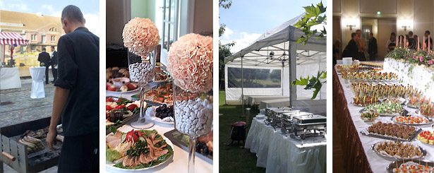 Ob eine kleine Versorgung für ein Meeting, kreatives Finger-Food oder ein Büffet - wir sind für Sie da. Stöbern Sie uns unseren Online-Katalogen oder lassen Sie sich von unseren Mitarbeitern beraten. Wir bieten Ihnen die Möglichkeit - angefangen von der reinen Lieferung von Happen und Buffets - auch Getränke, Personal, Ausstattung, Blumenschmuck und Dekoration, Beschallung, einen DJ, Musiker und vieles mehr aus einer Hand zu beziehen.